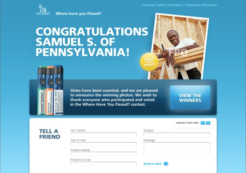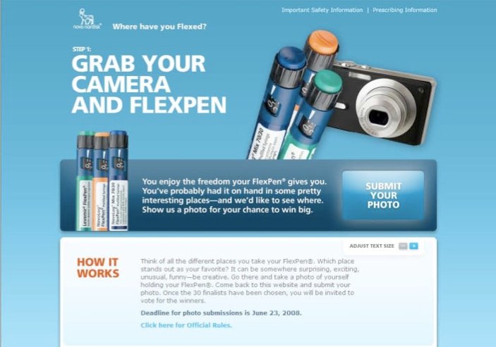 Novo Nordisk launched the Where Have You Flexed? photo contest to help increase brand awareness for its FlexPen portable insulin device.