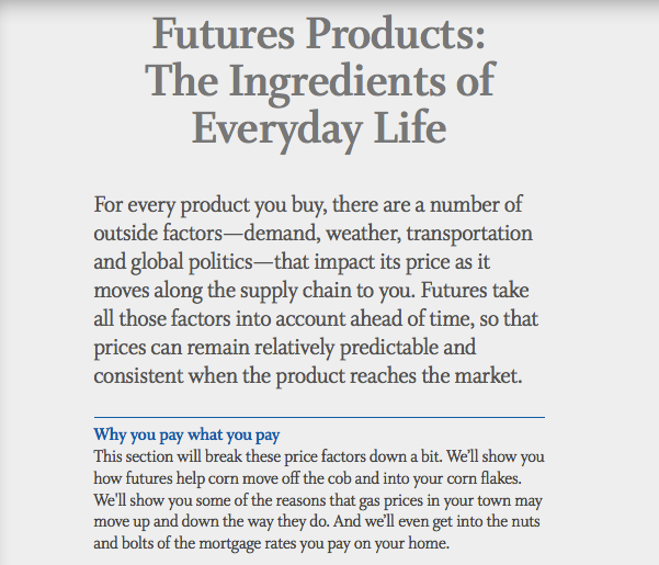Much of the content included plain-language essays about the role of futures markets in our everyday lives.