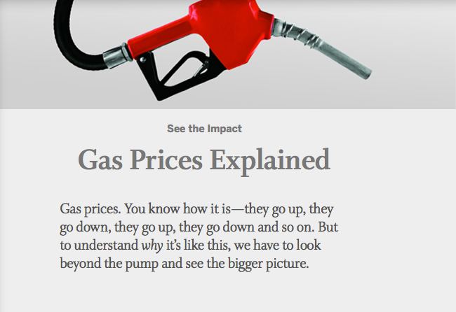 This is an intro to an interactive infographic that walks users through the reality of gas prices.