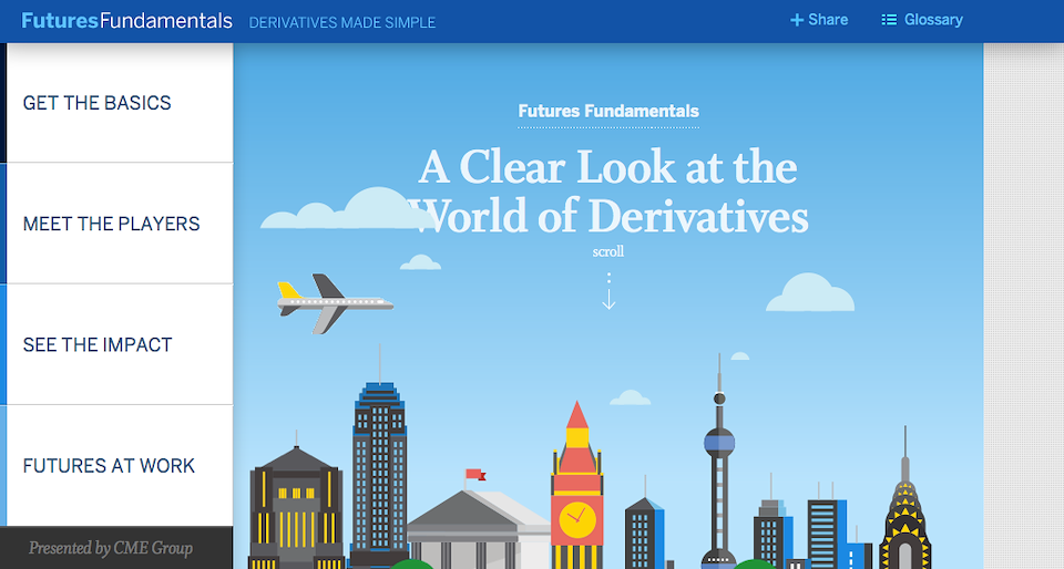 Futures Fundamentals breaks down the core components of the futures markets, contextualizing their impact on the everyday prices we pay for things like food and fuel. Using interactive infographics and simple essays, the site simplifies the complex and helps people make sense of the global financial marketplace.