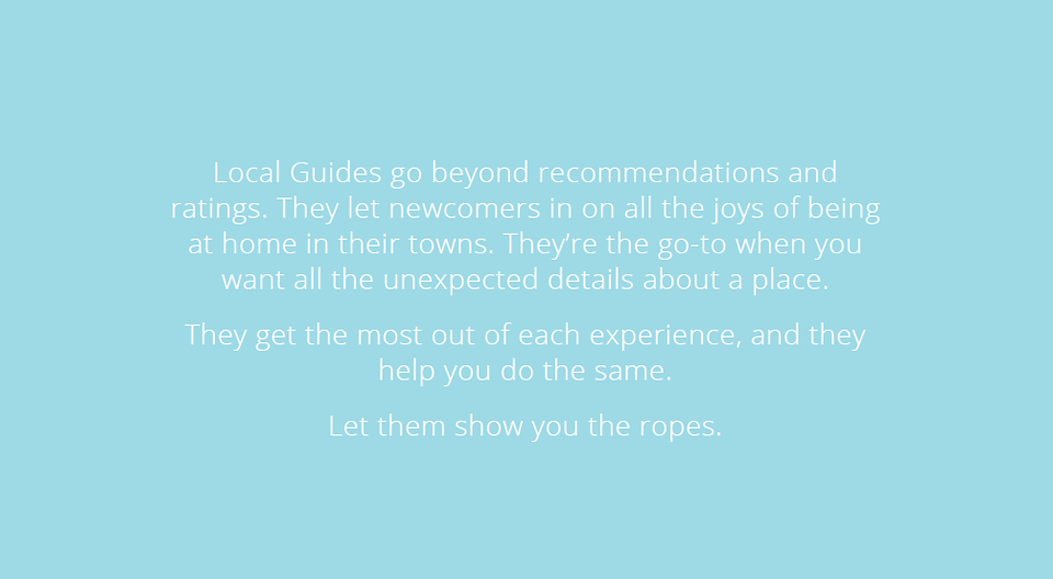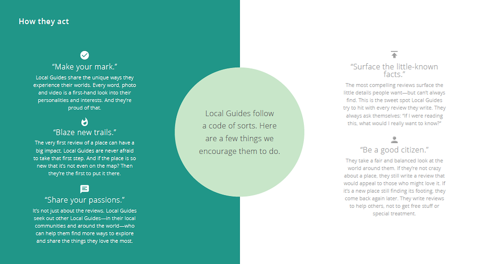 Local Guides is a global community of online reviewers whose content shows up when you search for businesses and attractions in Google Maps. I served as lead writer and strategist for the program’s full-scale rebranding effort, including naming, brand book and guidelines, initial launch website, social media strategy and deployment models, and live-event collateral.